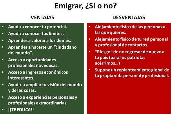 Si hago un recuento retrospectivo de las ventajas y desventajas que puede reportarte emigrar a otro país, me sale el cuadro anexo.